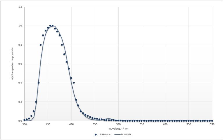 Die entsprechende Blaulichtgefährdung gemäß der Norm EN62471 kann optional mit der LMK color versehen werden. Die Norm EN 62471 behandelt die photobiologische Sicherheit von Lampen und Beleuchtungssystemen. Sie legt Grenzwerte für verschiedene Auswirkungen auf das Auge fest. Unter anderem die Blaulichtgefährdung (BLH) des menschlichen Auges. Diese Grenzwerte und Schwellenwerte können durch Messungen überwacht werden.